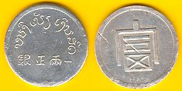 1 Tael Silber (Finanzministerium) (1943/44) lt. SCHÖN handelt es sich um eine Ausgabe für den Opimhandel, deshalb auch laotische und chinesische Schriftzeichen |
